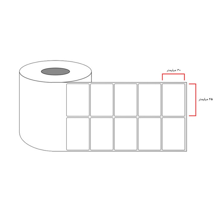 رنگ این لیبل سفید براق بوده و در ابعاد 30 میلیمتر در 45 میلیمتر عرضه می شود و حاوی 4000 عدد لیبل به صورت دو ردیف می باشد