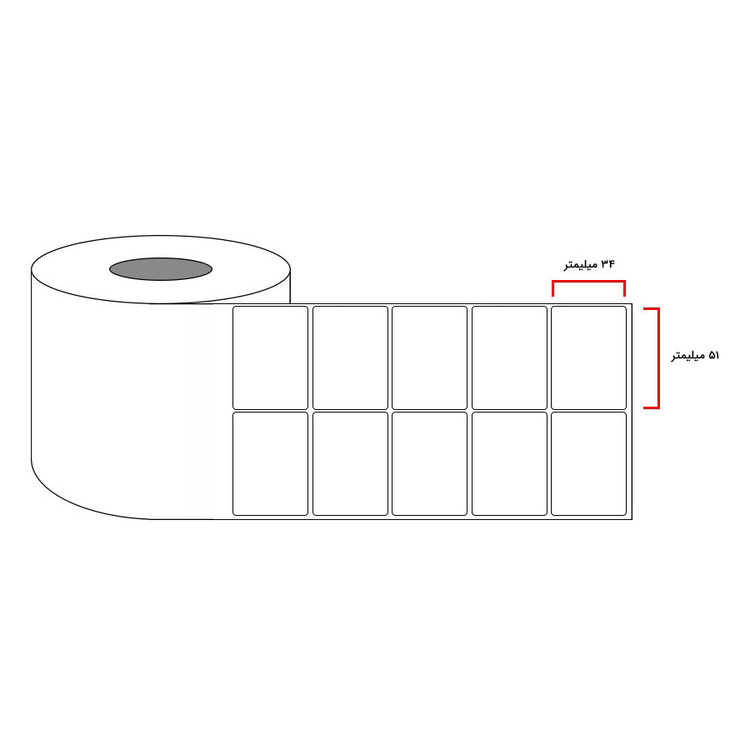 رنگ این لیبل سفید براق بوده و در ابعاد 34 میلیمتر در 51 میلیمتر عرضه می شود و حاوی 3000 عدد لیبل به صورت دو ردیف می باشد